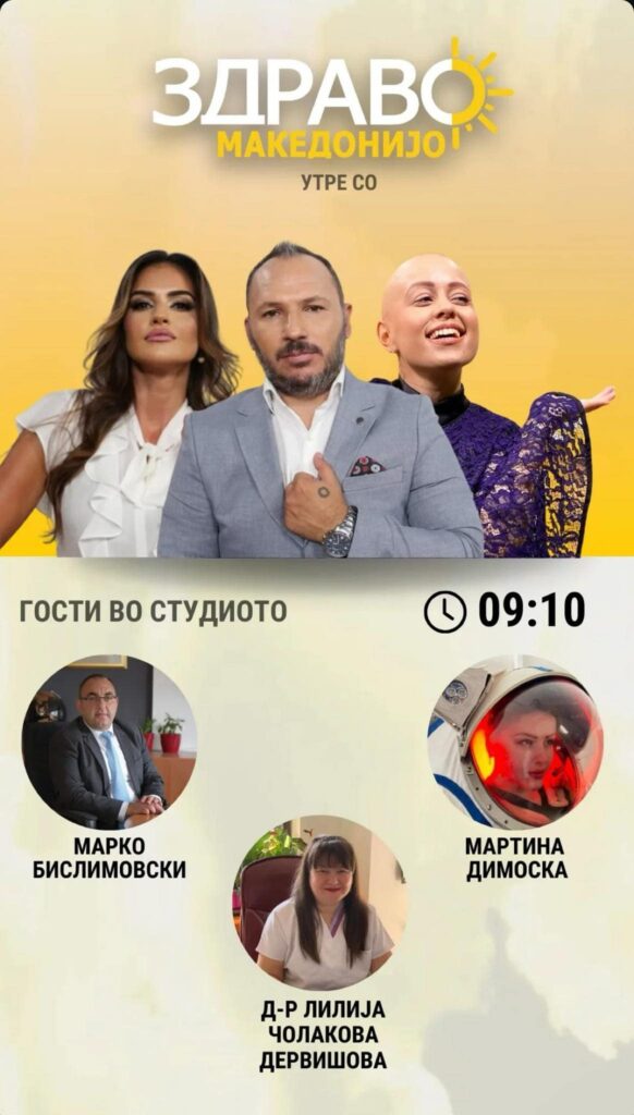 Следете го гостувањето во утринската емисија Здраво Македонијо на Д-Р ЛИЛИЈА ЧОЛАКОВА ДЕРВИШОВА