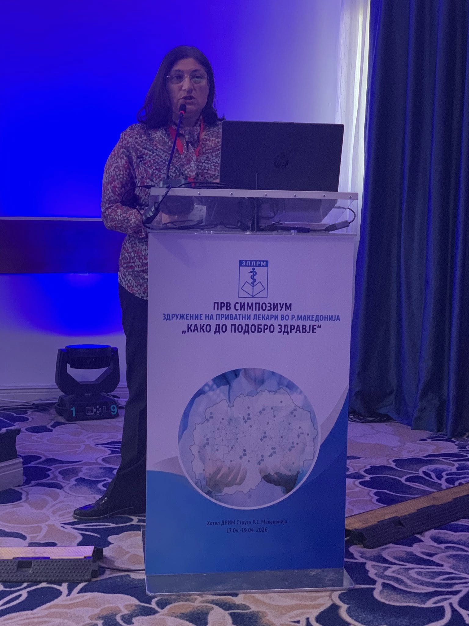 Проф. д-р Калина Гривчева Старделова, претседателка на Лекарската комора, се обрати на отворањето на Првиот симпозиум на Здружението на приватни лекари на Р Македонија, што се одржува во Струга од 17 до 19 април 2026 година.