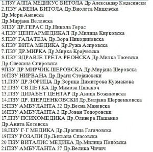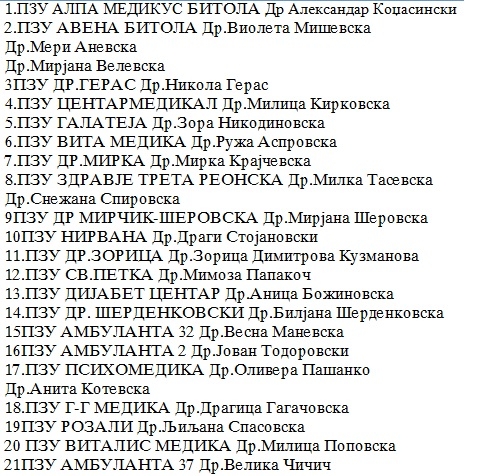 ПЗУ Ургента, ПЗУ Др Владо Јовановски Маер и уште голем број на амбуланти од Скопје и Прилеп.