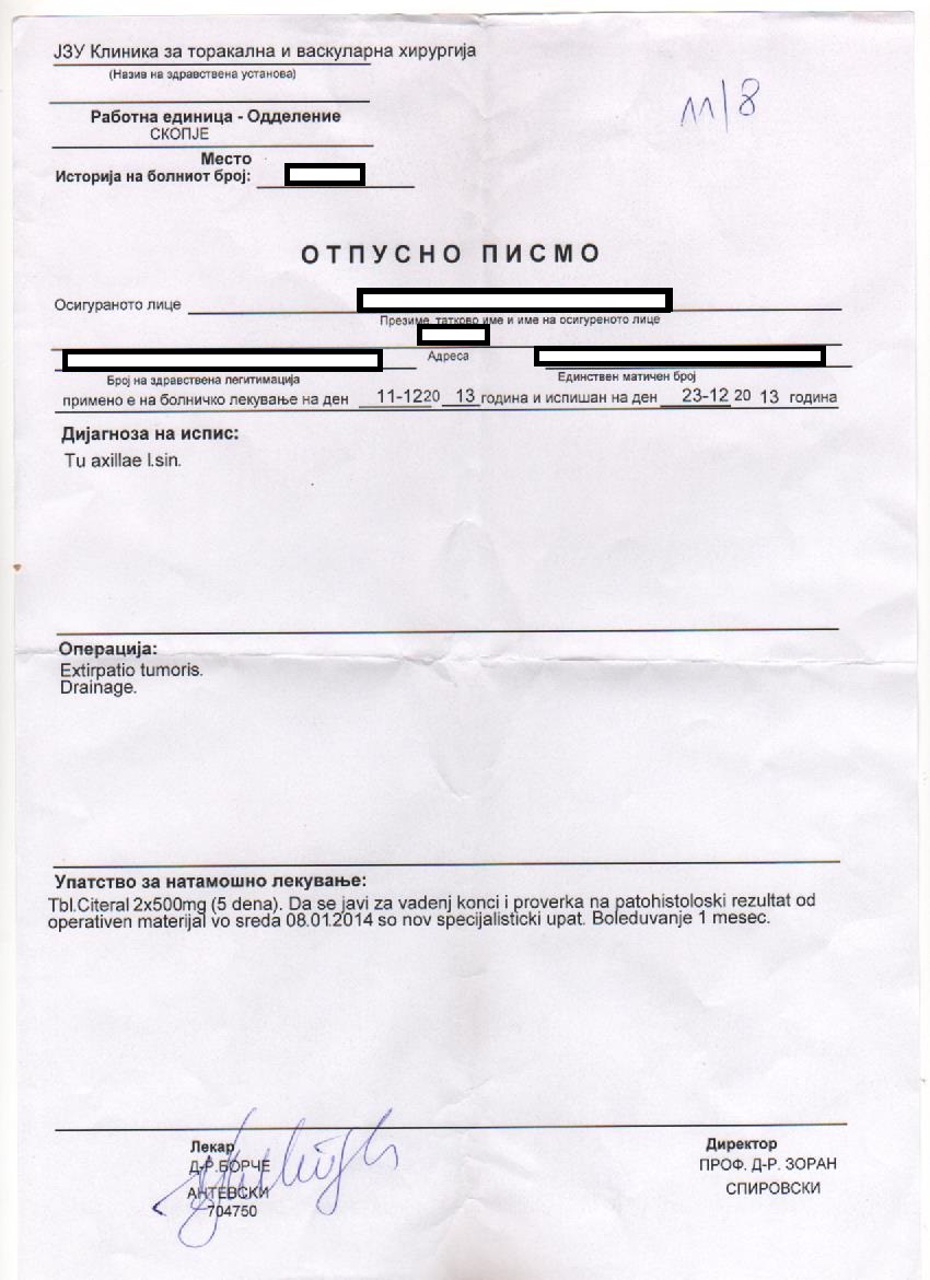 Дали е во ред на пациентка која е што туку оперирана од малигнитет во аксила