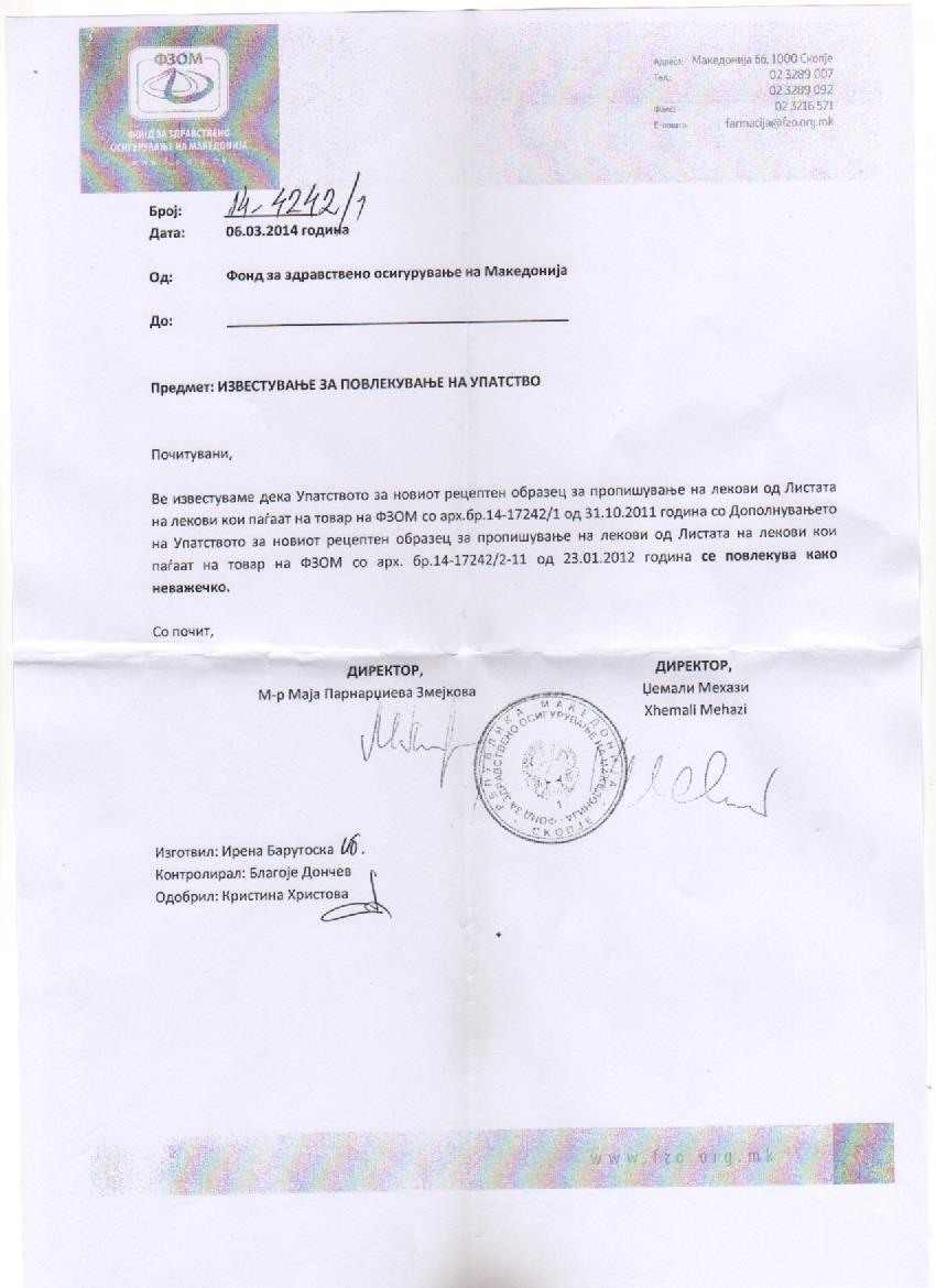 Министерство за Здравство Фонд за Здравство Лекарска комора